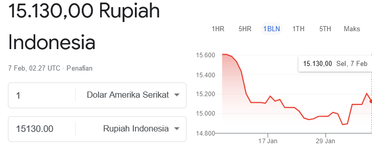 Melihat faktor eksternal dan internal ini, Ibrahim memperkirakan rupiah berpotensi dibuka berfluktuatif pada perdagangan Selasa (7/2/2023), tetapi ditutup melemah ke rentang Rp15.030–Rp15.100 per dolar AS.