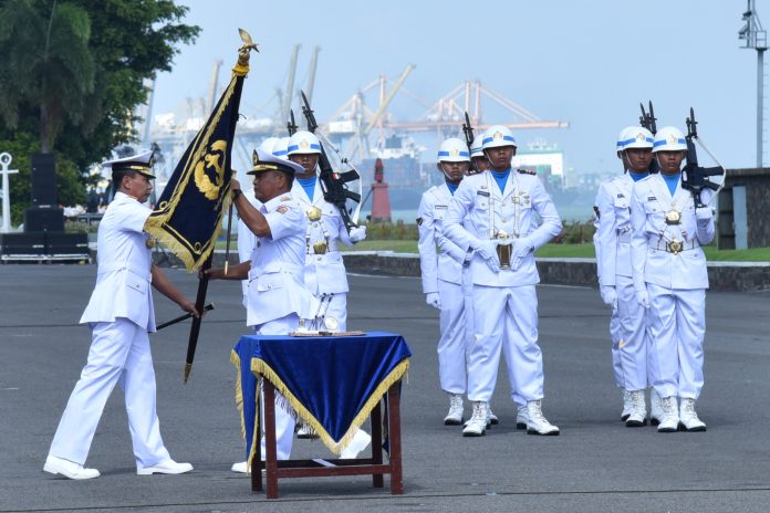 CHANEL7.TV, JAKARTA – Gubernur Akademi Angkatan Laut (AAL) Mayjen TNI (Mar) Endi Supardi didampingi Ketua Cabang Berdiri Sendiri (CBS) Jalasenastri AAL Ny. Nana Endi Supardi, menghadiri Upacara Serah Terima Jabatan (Sertijab) Pangkoarmada II yang dipimpin oleh Pangkoarmada RI Laksdya TNI Heru Kusmanto, bertempat di Dermaga Ujung Koarmada II Surabaya, Senin (27/2).