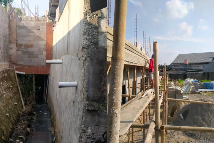 Pasalnya, Bangunan tersebut, dibangun tepat diatas Saluran Pembuangan Air (Drainase) pemukiman Warga Kampung Rawa Sapi. Menurut informasi, Pemilik Bangunan berencana akan membangun lahan tersebut untuk full Alat-Alat Berat, namun Warga RT 04 RW 10 protes/tidak setuju akan pembangunan itu karena warga khawatir apabila musim hujan mereka akan mudah mengalami kebanjiran.