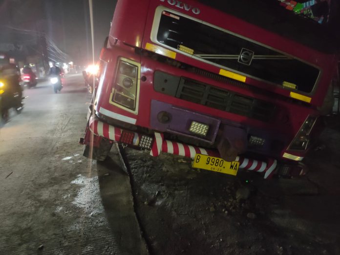 “Ngangkut craine tadi dari arah ke Cibarusah mau masuk ke garasi servis, kebetulan mobil truk kan panjang jadi muter dulu pas menepi enggak tau gorong gorong itu enggak kuat dan amblas,” kata Deden (27) pengemudi truk saat ditemui dilokasi, Sabtu dini hari tadi.