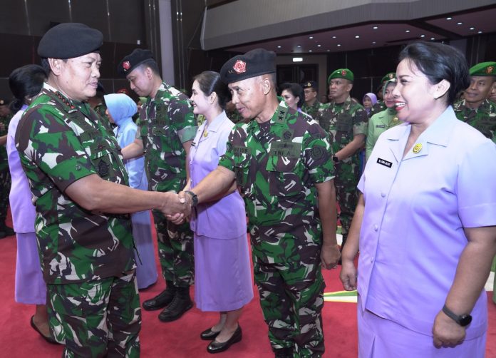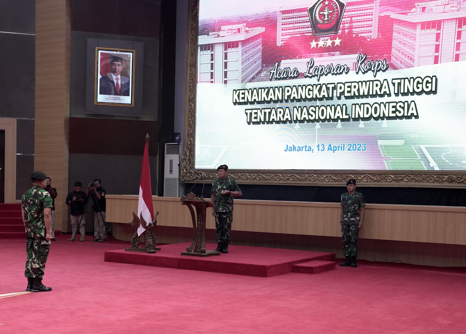 CHANEL7.TV, JAKARTA – Sebanyak 80 orang Perwira Tinggi (Pati) TNI laksanakan Korp Raport kenaikan pangkat Kepada Panglima TNI, Laksamana TNI Yudo Margono, S.E., M.M., bertempat di Aula Gotot Soebroto Mabes TNI Cilangkap, Jakarta Timur, Kamis (13/4/2023).