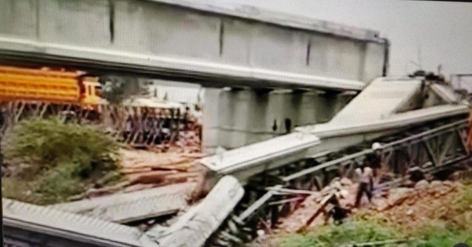 Belum diketahui penyebab robohnya jembatan tersebut. Garis polisi telah dipasang di lokasi konstruksi proyek jembatan penghubung yang roboh tersebut.
