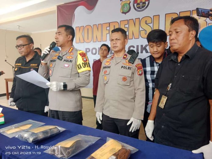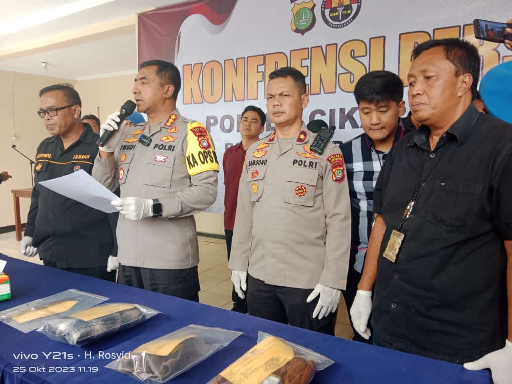“Polisi berhasil mengamankan pelaku setelah kejadian, barang bukti yang diamankan, sebilah pisau dapur kemudian satu potong baju kemeja kotak-kotak warna coklat dan satu potong baju merah muda milik korban kemudian satu kaos tangtop,” kata Twedi saat gelar perkara di Mapolsek Cikarang Utara, Rabu (25/10/2023).
